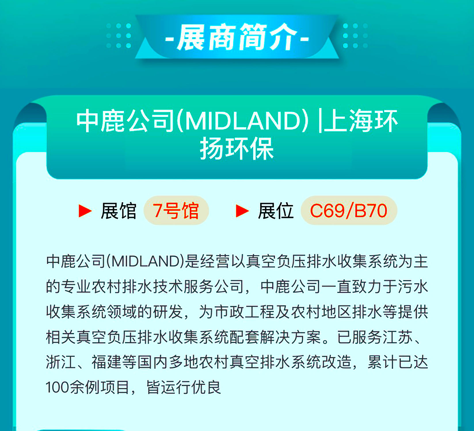 作为污水收集领域的环保行业专家,苏州中鹿环保设备有限公司,继2024年4月中国环博会上海展后,将于2024年9月23日至9月25日再次踏上环保事业新征程,并将在展会中璀璨绽放,为到达现场及全国各地的朋友们献上一份诚意满满的答卷。